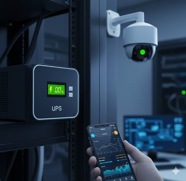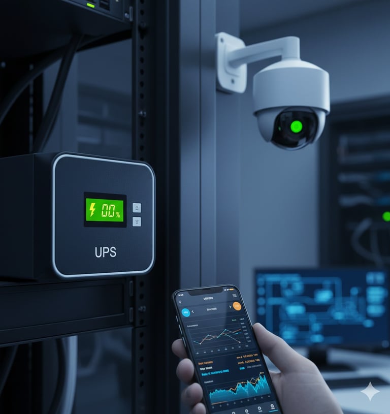Sistemas UPS, respaldo de energía e instalación de cámaras y control de acceso.